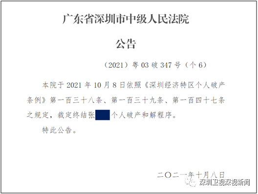 10月8日,深圳市中級(jí)人民法院形成有關(guān)民事裁定書(shū)指出,經(jīng)審查,該案和解程序規(guī)范完整,和解過(guò)程公開(kāi)透明,和解協(xié)議系債務(wù)人與債權(quán)人的真實(shí)意思表示,未損害國(guó)家利益、社會(huì)公共利益或者他人合法權(quán)益,亦不違反法律、行政法規(guī)的強(qiáng)制性規(guī)定;并裁定終結(jié)張某個(gè)人破產(chǎn)和解程序。