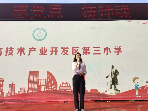 金秋九月,不忘師恩。為慶祝第37個教師節(jié),弘揚尊師重教的良好風尚,進一步推進師德建設(shè)。2021年9月10日上午,火炬開發(fā)區(qū)第三小學全體師生齊聚學校操場舉行了以 “賡續(xù)百年初心 擔當育人使命”為主題的教師節(jié)慶祝活動。