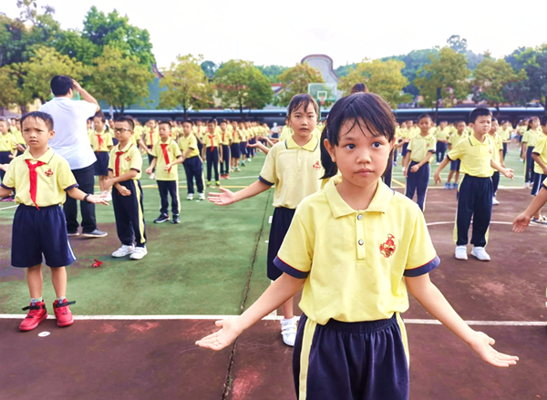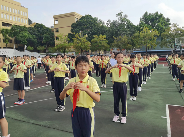最后,隊員代表獻上節(jié)日的贊歌——《感師恩,念師情》,全體少先隊員獻上手語操《聽我說謝謝你》,來表達自己對老師們的感恩之情。看著隊員們專注的神情,笑盈盈的臉蛋,每位老師心里滿是溫馨和感動,濃厚的感恩氣氛洋溢在整個校園。
