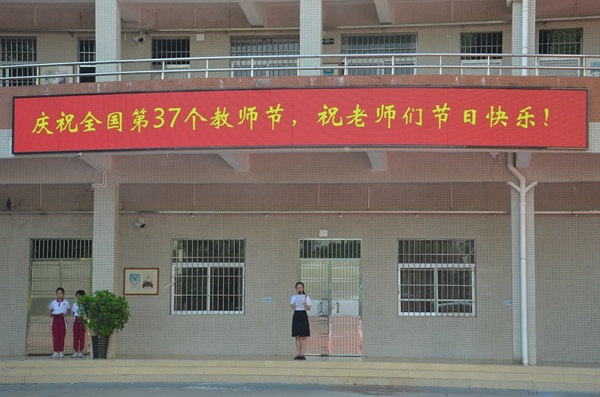 慶祝活動上,主持人羅曉玲老師帶著全體同學向全體老師送上了節(jié)日的問候與美好的祝福。接著,學校黨支部書記鄭碩果同志對學校“師德楷模”張小豐老師、甘允恒老師頒發(fā)了榮譽證書,并向全體師生介紹了兩位優(yōu)秀教師的先進事跡,號召大家向他們學習。