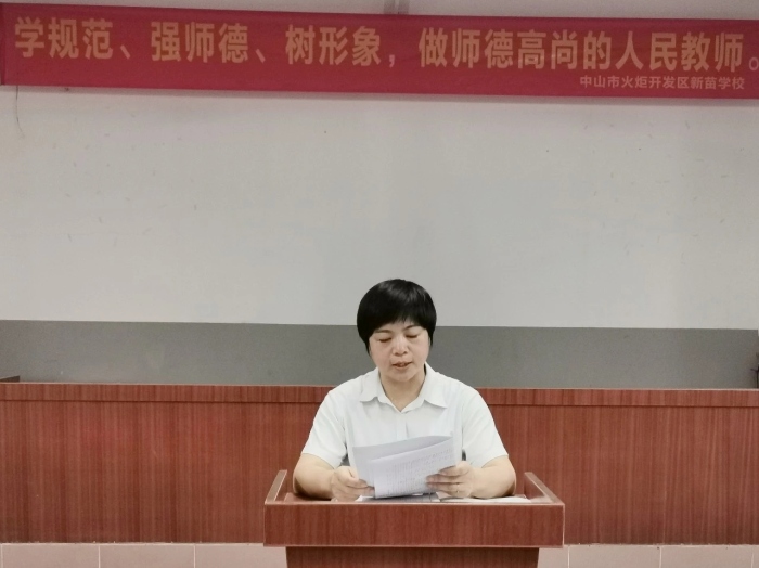 陶行知先生曾經(jīng)說(shuō)過(guò):“學(xué)高為師,德高為范。”良好的師德,高尚的師風(fēng)是做好教育的核心。為了不斷提高新苗學(xué)校教師的師德修養(yǎng),加強(qiáng)教師隊(duì)伍師德師風(fēng)建設(shè),樹(shù)立嚴(yán)格自律、愛(ài)崗敬業(yè)、為人師表的良好教師形象,增強(qiáng)教師教書(shū)育人的光榮感、責(zé)任感和使命感,9月8日晚,新苗學(xué)校舉行了“學(xué)規(guī)范、強(qiáng)師德、樹(shù)形象,做師德高尚的人民教師”師德師風(fēng)專(zhuān)題培訓(xùn)會(huì)。此次培訓(xùn)會(huì)由新苗學(xué)校校長(zhǎng)鄒麗主持。