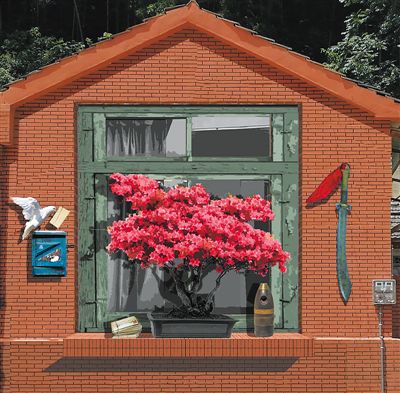 安徽省六安市霍山縣諸佛庵鎮(zhèn)丙烯壁畫《窗前的杜鵑花》,中國美術(shù)學院繪畫藝術(shù)學院師生集體創(chuàng)作。 |