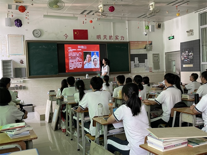 在主題班會(huì)課上,班主任們貼近實(shí)事熱點(diǎn),以圖文并茂的方式,向同學(xué)們講解了偶像與明星的區(qū)別,使同學(xué)們正確認(rèn)識(shí)到什么才是真正的偶像。班主任們還分享了許多中華民族英雄的光輝事跡和感人故事,如新冠疫情期間奮戰(zhàn)在最前線的醫(yī)務(wù)工作者、東京奧運(yùn)會(huì)上為國爭(zhēng)光的中國運(yùn)動(dòng)健兒,以及在科技領(lǐng)域潛心研究、做出重大貢獻(xiàn)的科學(xué)家們,引導(dǎo)學(xué)生多關(guān)注、多學(xué)習(xí)這些民族偶像,學(xué)習(xí)他們身上所擁有的濃厚的家國情懷、堅(jiān)定的理想信念以及優(yōu)秀的人格品質(zhì),讓學(xué)生謹(jǐn)記要摒棄網(wǎng)絡(luò)上缺乏理性和盲目無知的追星行為,樹立正確的人生觀、價(jià)值觀、世界觀,積極向理性正面、積極向上的偶像崇拜主流思想靠攏。最后,班主任們帶領(lǐng)學(xué)生進(jìn)行“尋找身邊的偶像”活動(dòng),讓學(xué)生明白偶像并非遙不可及、遠(yuǎn)在天邊,只要善于發(fā)現(xiàn),就可以在身邊尋找到值得學(xué)習(xí)的偶像;并且通過自身的不斷努力、提高修養(yǎng),自己也能成為他人的偶像。