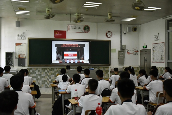 2021年9月10日,中山市火炬科學(xué)技術(shù)學(xué)校2021-2022學(xué)年度第一學(xué)期開學(xué)典禮暨開學(xué)第一課在南朗校區(qū)紫荊堂舉行,全校師生通過(guò)教室多媒體直播系統(tǒng)進(jìn)行收看。中山市火炬科學(xué)技術(shù)學(xué)校校長(zhǎng)程少輝,中山市反詐騙中心翠亨新區(qū)分中心劉逸澤警官,南朗街道南苑派出所駐校民警鐘潤(rùn)祥警官,以及南朗街道綜治辦、禁毒辦的工作人員等參加了本次活動(dòng),活動(dòng)儀式由學(xué)校德育處副主任袁建主持。