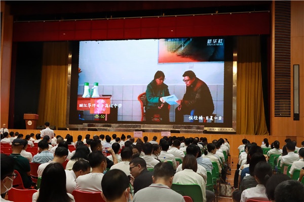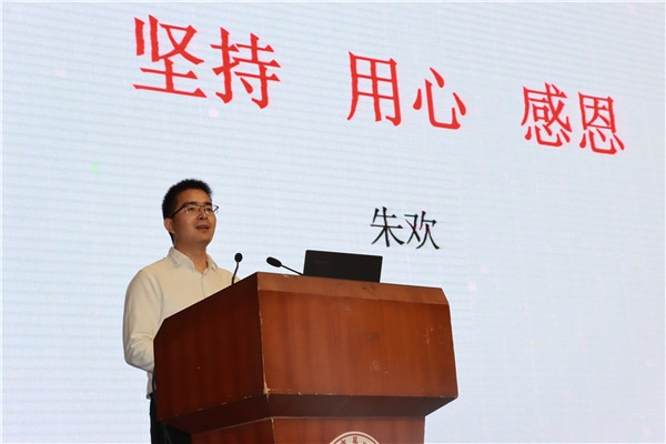 隨后,分別來自該校初、高中的溫瑩瑩老師、朱歡老師以及姚彬老師各自分享關(guān)于自己從教以來的所思、所想、所做。溫瑩瑩老師以“風(fēng)好正是揚帆時”為題,與同事們講述了自己的成長故事;朱老師歡則以“堅持、用心、感恩”詮釋了自己關(guān)于教師一職的感悟;姚彬老師則與在座老師分享了他“從教的時光印跡”,溫情滿滿。校黨委書記、校長王錫文同志也以“一生只為一事來”為題,與在場老師講述了自己對“教師”二字的感悟。他說:“老師們,教師不僅僅是一份職業(yè),更是一種為黨育人、為國育人的責(zé)任。身為師者,我們?nèi)沃囟肋h(yuǎn)……對教師來說,立德樹人是天職,點亮他人是信念。我們都要堅守這份信念,勇往直前,實現(xiàn)身為人師的價值。”