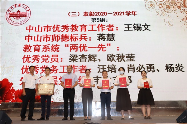 會上,學(xué)校校領(lǐng)導(dǎo)先后為獲“中山市師德標(biāo)兵”“中山市優(yōu)秀教師”“中山市第一中學(xué)優(yōu)秀教師”等頒發(fā)獎狀。其中,王錫文校長獲得“2021年南粵優(yōu)秀工作者”“中山市優(yōu)秀教育工作者”稱號、楊朝青主任獲“廣東省特級教師”、林婉燕副校長獲“中山市優(yōu)秀黨員”、蔣慧老師獲“中山市師德標(biāo)兵”等,共計逾180人次獲得表彰。大會還頒發(fā)了在“中山市第一中學(xué)學(xué)科組建設(shè)評價”中獲獎的科組名單,現(xiàn)場掌聲不斷。