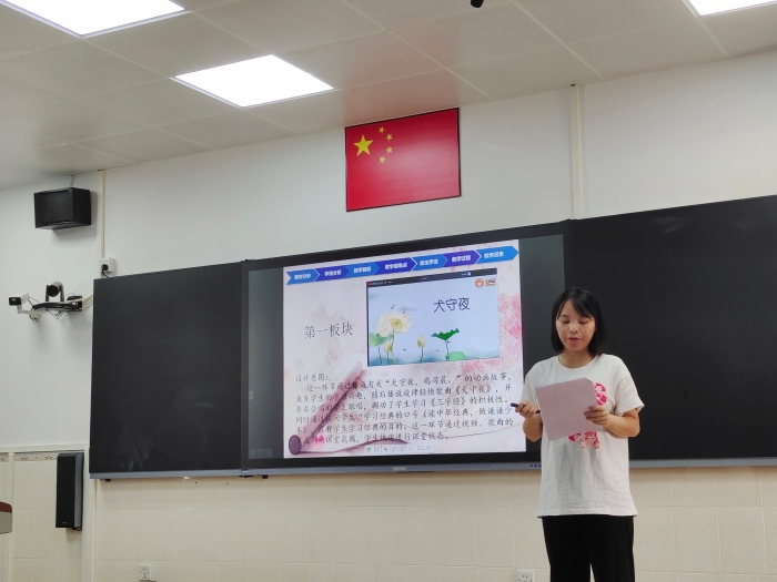 16日,組內(nèi)初賽如期舉行。13節(jié)課,13種風(fēng)格;13位青年教師,13種看家本領(lǐng)。授課內(nèi)容均選自國(guó)學(xué)啟蒙、經(jīng)典詩(shī)詞等中華優(yōu)秀傳統(tǒng)文化。有的老師運(yùn)用視頻、圖片等多媒體手段,帶領(lǐng)學(xué)生走進(jìn)詩(shī)詞,感受詩(shī)詞的韻味;有的老師深挖文本,由朗讀到吟誦再到配樂(lè)吟詠,由淺入深,引導(dǎo)學(xué)生讀中悟,體會(huì)詩(shī)人的心境;有的老師從實(shí)際出發(fā),提舉生活實(shí)例,讓學(xué)生在生活中接受傳統(tǒng)文化的熏陶,讓傳統(tǒng)美德如春風(fēng)潤(rùn)物細(xì)無(wú)聲般地浸潤(rùn)孩子的心田。執(zhí)教的老師扎實(shí)的課堂基本功、豐厚的文化底蘊(yùn)以及靈動(dòng)的課堂設(shè)計(jì)讓人印象深刻,課堂效果可謂精彩紛呈。