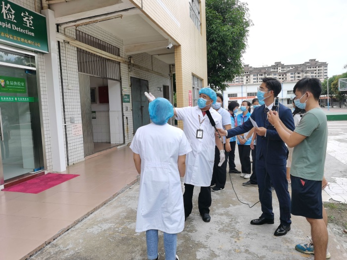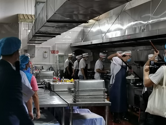 為進(jìn)一步規(guī)范食堂管理,認(rèn)真做好學(xué)校食堂食品安全監(jiān)管工作,切實(shí)守護(hù)全體師生“舌尖上的安全”,9月23日下午,2021年橫欄鎮(zhèn)第四期“全民投票查餐廳”活動,經(jīng)過前期的網(wǎng)民投票推選,由橫欄鎮(zhèn)食品藥品監(jiān)督所工作人員,鎮(zhèn)人大代表以及熱心市民組成的檢查組走進(jìn)橫欄中學(xué),開展了直播活動。學(xué)校主管后勤工作的張翔副校長全程參與了此次活動。