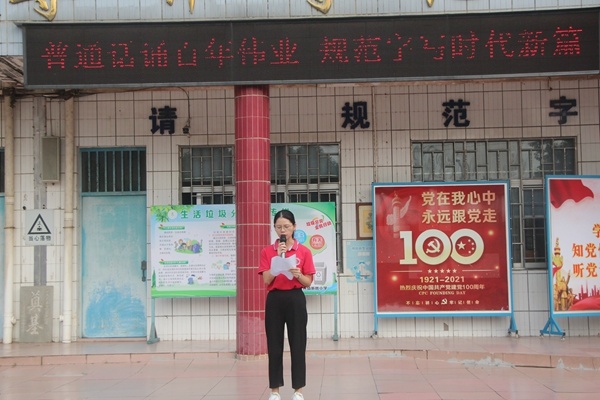 9月13日的升旗儀式上,語(yǔ)文科組長(zhǎng)劉小輝老師進(jìn)行主題為“普通話誦百年偉業(yè),規(guī)范字寫(xiě)時(shí)代新篇”的國(guó)旗下講話,劉老師向全校師生發(fā)起倡議,呼吁全體師生講普通話,寫(xiě)規(guī)范字,做文明人,積極參與到推普周活動(dòng)中來(lái),為構(gòu)建和諧語(yǔ)言生活,弘揚(yáng)中華優(yōu)秀文化而努力。
